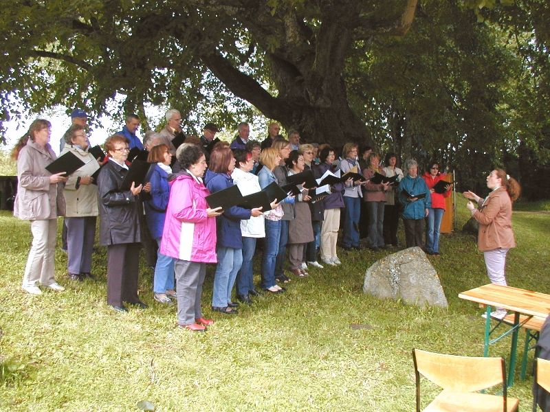 Mengerskirchen/Greifenstein-Arborn (ts). Am Knoten weht immer ein kräftiger Wind. Dies verspürten auch die Christen, die zum ökumenischen Gottesdienst beim „Dicke Baam" auf der Gemarkungsgrenze zwischen Mengerskirchen und Arborn gekommen waren.