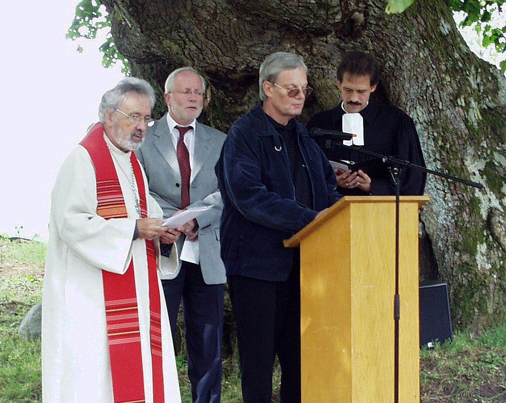 In seinem Grußwort stellte Bürgermeister Robert Becker das bisher einmalige Ereignis heraus, dass an der Stelle, wo vor vielen hundert Jahren die erste christliche Kirche der gesamten Gegend stand, evangelische Christen aus Arborn und katholische Christen aus Mengerskirchen gemeinsam Gottesdienst feierten. Es sei nicht immer selbstverständlich gewesen, dass sich die Bewohner der beiden Orte problemlos begegneten, so Becker, denn vor allem die Jugendlichen beider Orte hätten sich an dieser Stelle bis noch vor dem 2. Weltkrieg mit Steinwürfen auseinander gesetzt. Heute seien diese unrühmlichen Vorgänge nur noch den älteren Generationen bekannt, die Zeit des Misstrauens und der Intoleranz sei endgültig vorbei. Becker würdigte die gemeinsame Arbeit der Bewohner der beiden Nachbargemeinden an der Heilig-Kreuz-Kirche. Um die Gemeinsamkeit zu unterstreichen, haben die beiden Gemeinden an dieser historischen Stelle eine Bronzetafel aufgestellt. |