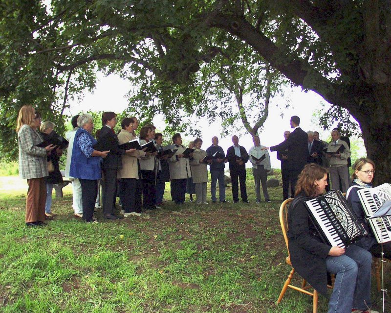 Auch Pfarrer Thomas Gessner wies auf die historische Vergangenheit des Ortes der Heilig-Kreuz-Kirche hin und dankte den Initiatoren des Gottesdienstes. Das Kreuz habe früher die Menschen verbunden, vom Kreuz sei Frieden ausgegangen. Dies solle auch heute wieder gelten. Lange genug hätten Streitigkeiten zwischen den Glaubensgemeinschaften zu Zerwürfnissen in den Familien und in den Dörfern geführt. Die Zeit der Gegensätze müsse beendet sein, das gemeinsame Feiern eines Gottesdienstes an der Heilig-Kreuz-Kirche könne dazu beitragen. Musikalisch wurde der Gottesdienst durch den gemeinsamen Auftritt des Arborner Frauenchores und des Mengerskirchener Kirchenchores mitgestaltet, die Gemeindelieder wurden vom Akkordeontrio Sonja Engelhardt, Lena Klöpper und Beate Lenis begleitet.